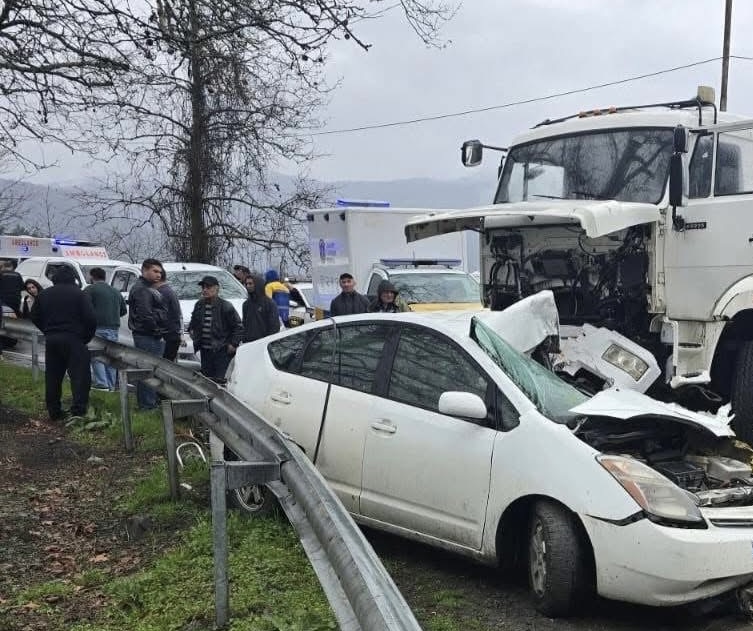 თვითმხილველების განცხადებით, სატვირთო ავტომობილის მძღოლმა კონტროლი დაკარგა, რამაც შეჯახება გამოიწვია.