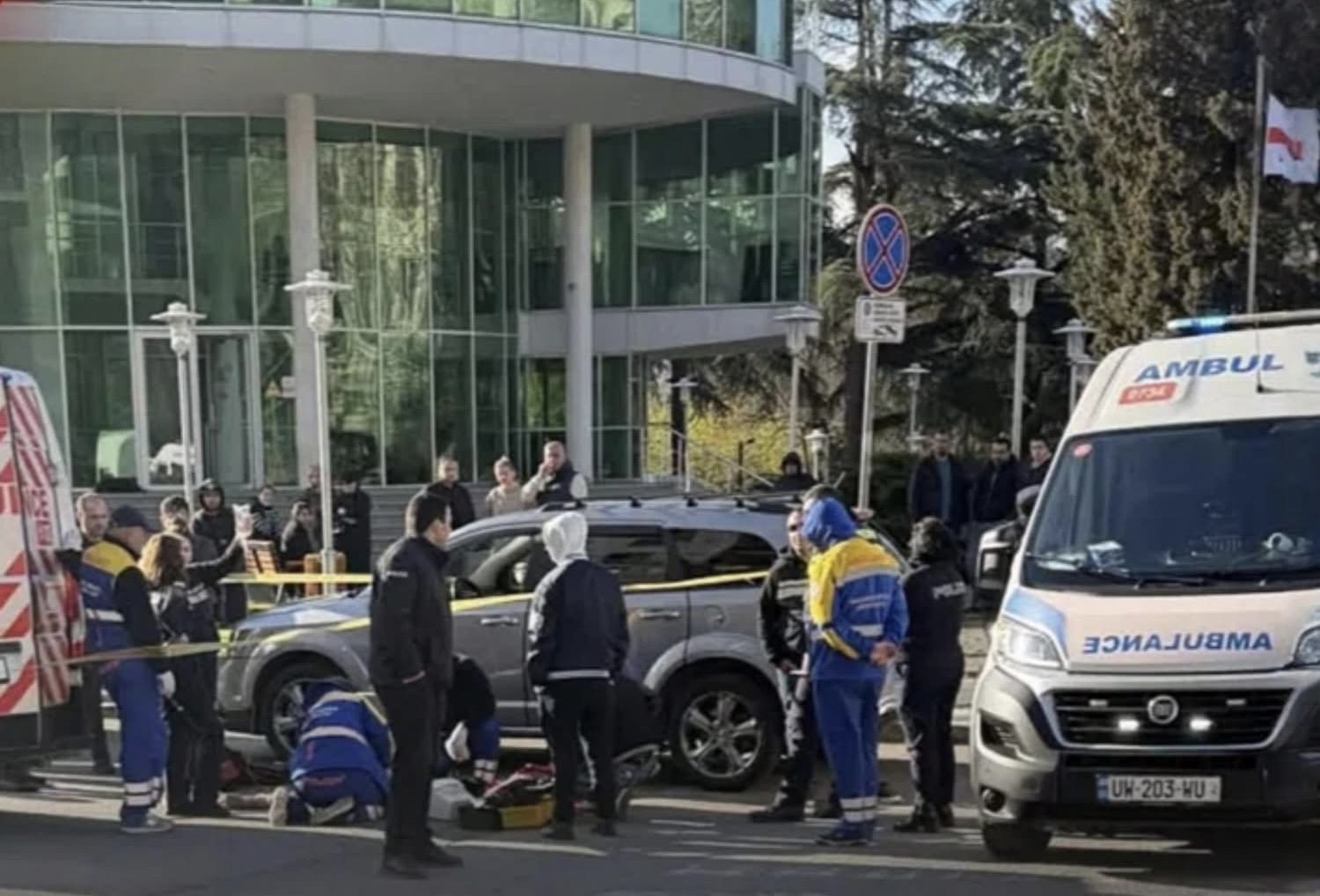 შემთხვევის ადგილზე პოლიციისა და სასწრაფო დახმარების ჯგუფები არიან მივიდნენ.